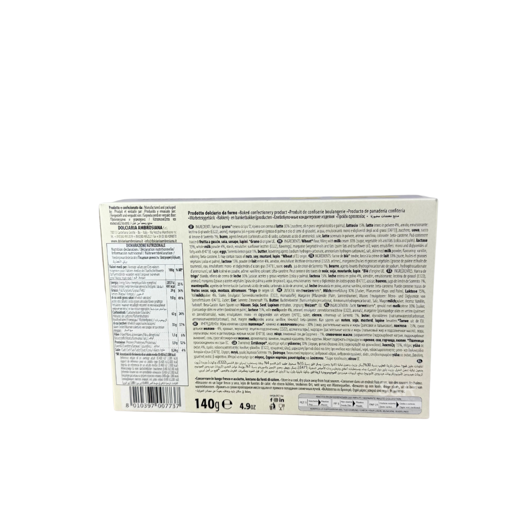 Ambrosiana Lemonmilk Italian Biscuit offers a refreshing citrus twist in biscuit form. Encasing a smooth lemon cream in a crisp biscuit shell, these treats provide a light but flavorful snack option. The 140 g pack is suited for small gatherings, personal snacking, or pairing with tea. With its elegant flavor profile and presentation, it’s a great pick for those who prefer lighter, fruity confections.