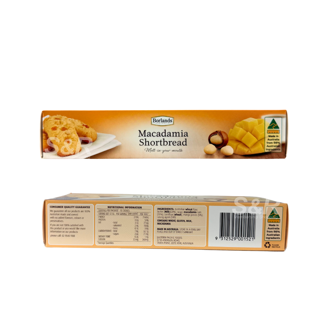 Borlands Mango Macadamia Shortbread combines buttery shortbread with the tropical sweetness of mango and the nutty crunch of macadamia. This delightful fusion creates a rich and refreshing treat, blending classic Scottish baking with exotic flavors. Whether for a personal indulgence or as a thoughtful gift, these cookies offer a luxurious taste experience that is both unique and satisfying.