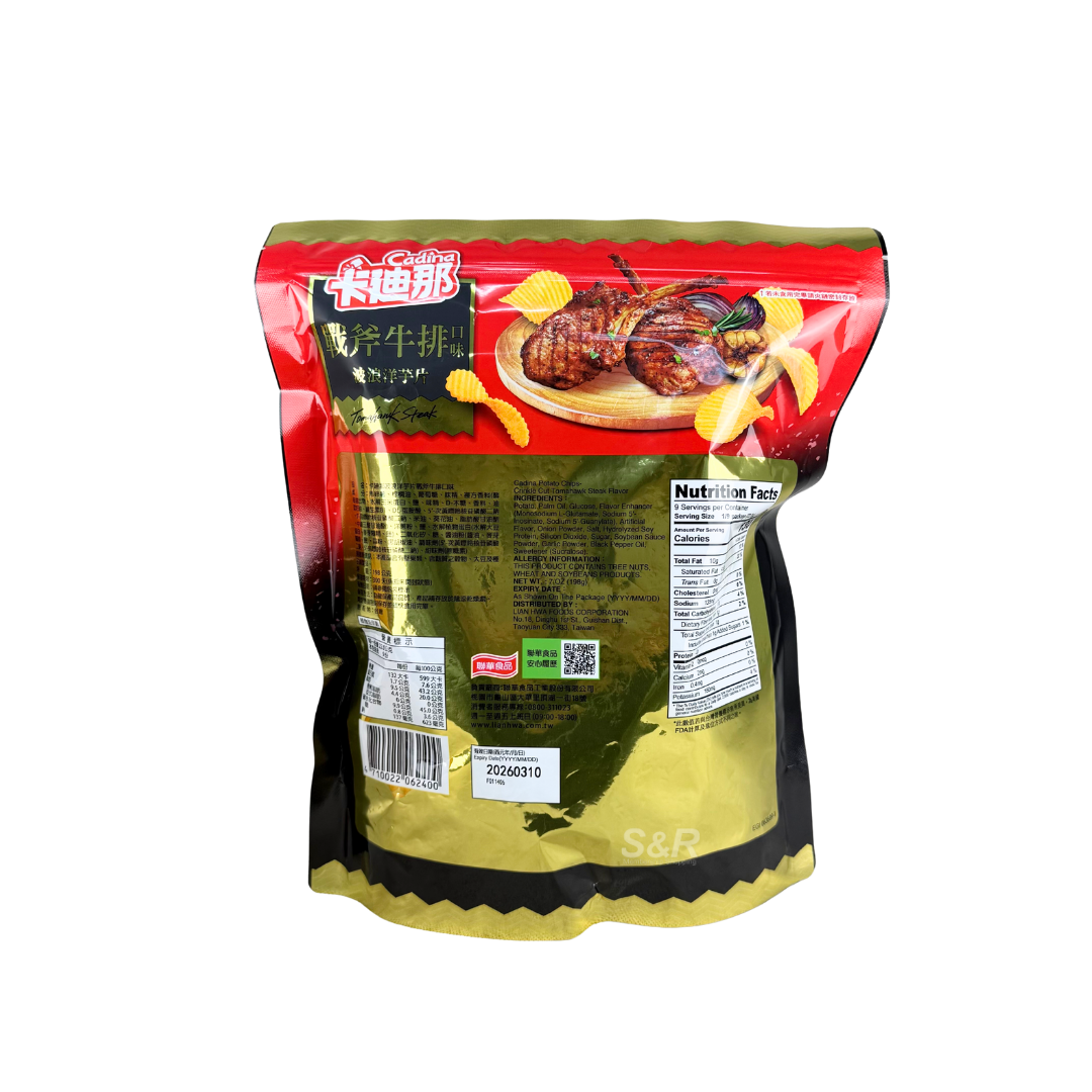• The Cadina Beef Steak Potato Chips offer a bold, meaty flavor in every crunchy bite. Made with thick-cut potatoes, these chips deliver satisfying texture paired with a deeply savory beef steak seasoning. The 198 g pack is ideal for sharing or for hearty snacking sessions. Whether on movie nights, gatherings, or casual indulgence, this flavor-forward chip stands out among classic options.