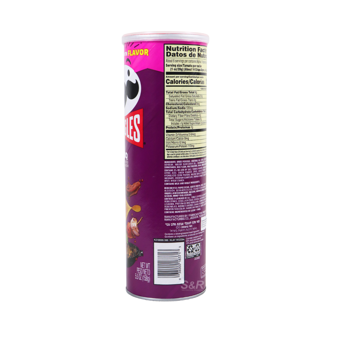 Pringles BBQ Flavor Potato Crisps offer a deliciously bold BBQ seasoning that enhances the classic Pringles crunch. The uniform shape and convenient canister make them easy to stack and share, perfect for snacking on the go or at gatherings. With their consistent texture and rich flavor, these crisps provide a satisfying snack experience every time.