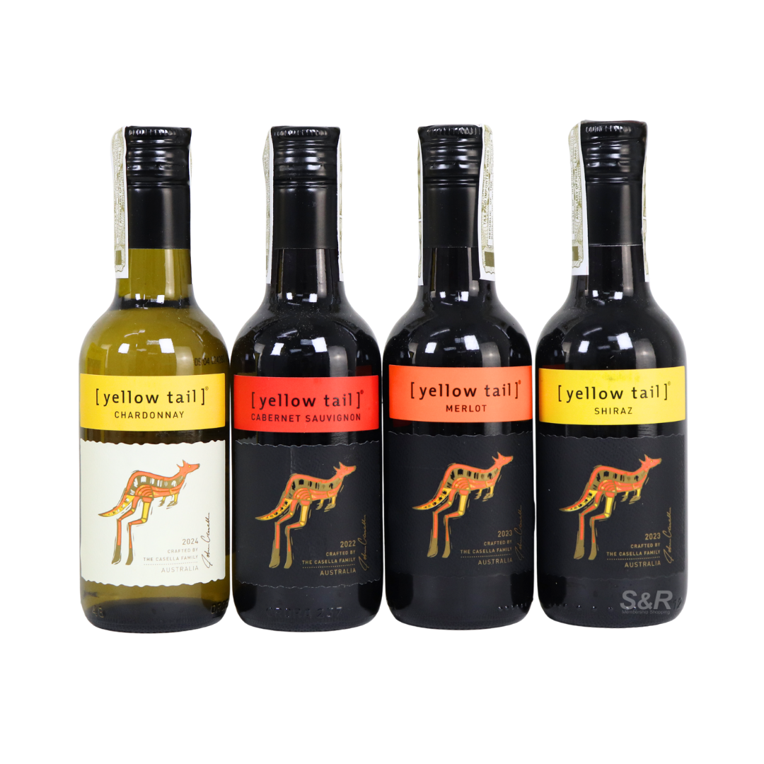 Complete your life with a complete set of Yellow Tail Mini Joey Wine! A wine collection consisting of Cabernet Sauvignon Red Wine, Merlot Red Wine, Shiraz Red Wine, and Chardonnay White Wine!